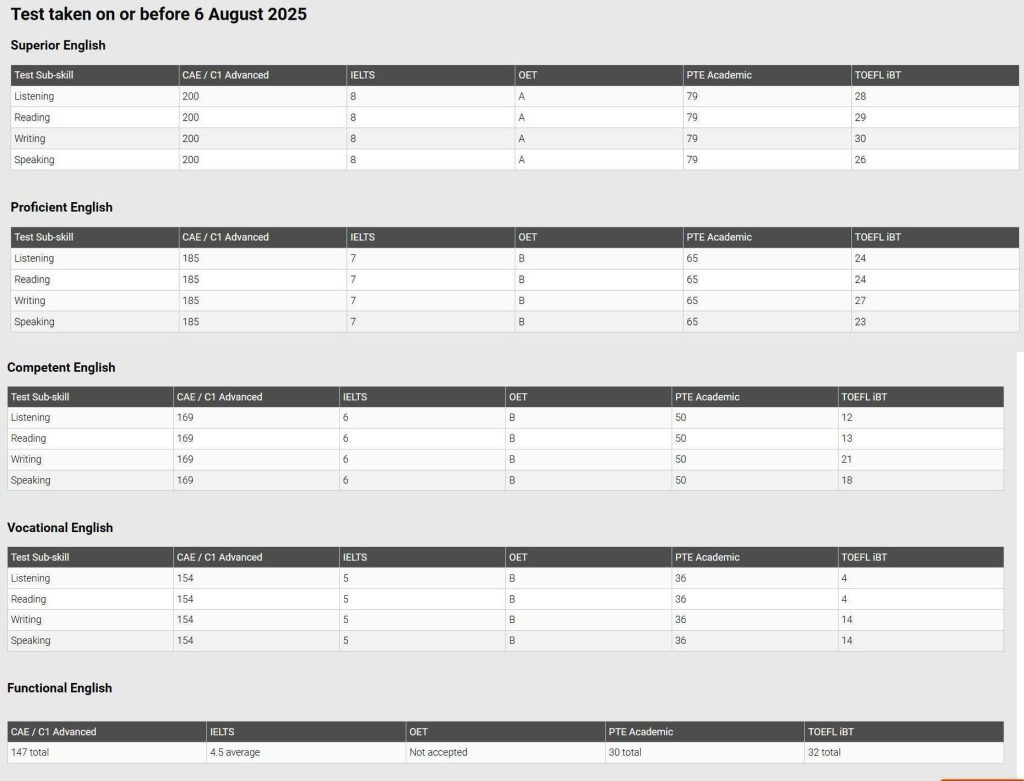 - Lưu ý: Nếu bạn thi trước ngày 7/8/2025, kết quả vẫn có thể được chấp nhận đến ngày 6/8/2028 tùy loại visa.